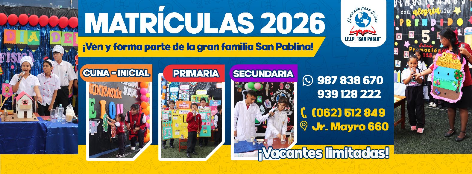 𝗖𝗢𝗟𝗘𝗚𝗜𝗢 𝗦𝗔𝗡 𝗣𝗔𝗕𝗟𝗢 Inicial – Primaria – Secundaria y CEBA No solo impartimos conocimiento, Formamos líderes con valores para la...